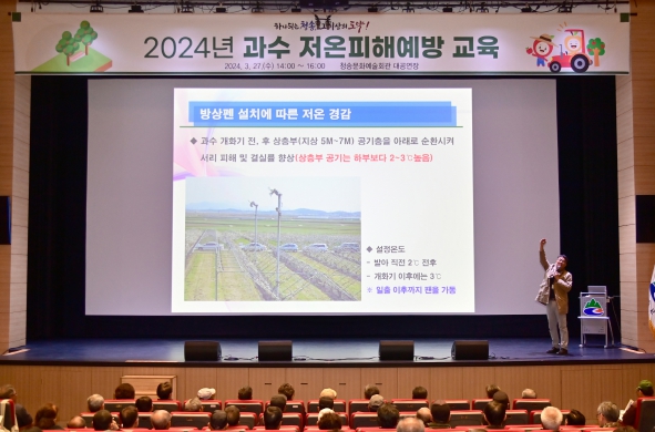 [뉴스서울] 청송군은 지난 27일 청송문화예술회관 대공연장에서과수농가 300여명을 대상으로 과수 저온피해예방 교육을 실시했다고 밝혔다.