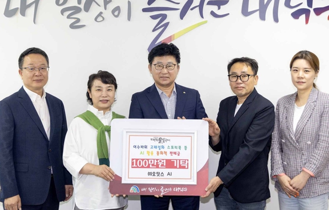 [뉴스서울] 대전 대덕구는 지난 28일 구청 (주)오딧스 AI에게 2024 대덕물빛축제 스토리북 및 인공지능 활용 동화책 판매 수익금 100만 원을 기탁받았다고 밝혔다.