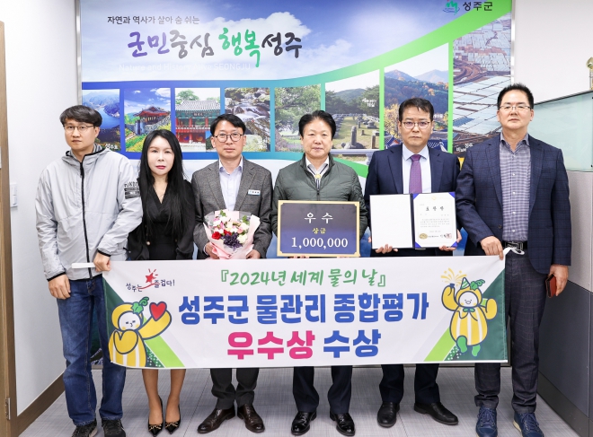 [뉴스서울] 성주군은 3월 21일 ‘안동 세계물포럼 기념센터’에서 경상북도가 주최한 ‘2024년 세계 물의 날’ 경상북도 유공기관 평가에서 우수기관으로 선정되어 기관표창과 함께 시상금 100만원을 수상했다.