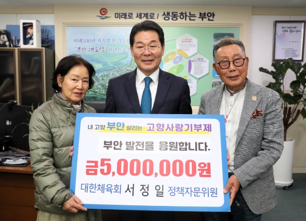 [뉴스서울] 부안군은 서정일 대한체육회 정책자문위원이 고향사랑기부제 최고 한도액인 500만원을 기탁했다고 밝혔다.
