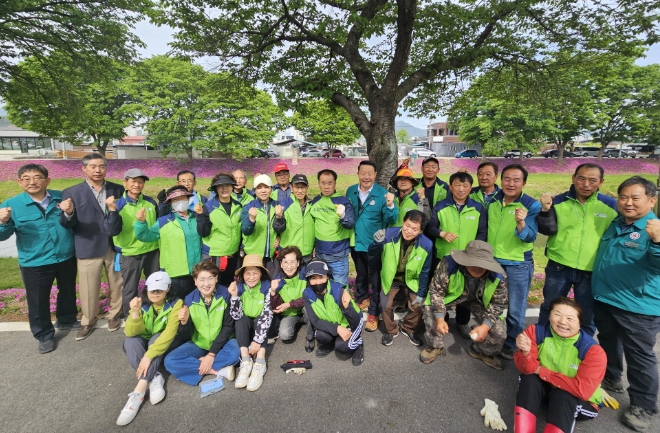 지난해 가을 식재했던 꽃잔디가 올 봄 화려하게 피어나며 군민들에게 사랑받는 공간으로 거듭났다. 이에 군과 주민 등 500여명이 참여해 풀을 뽑고 꽃잔디 관리 등에 적극 나서자 지역 사회단체들도 적극 동참하겠다는 의사를 군에 전달한 것으로 전해졌다.
