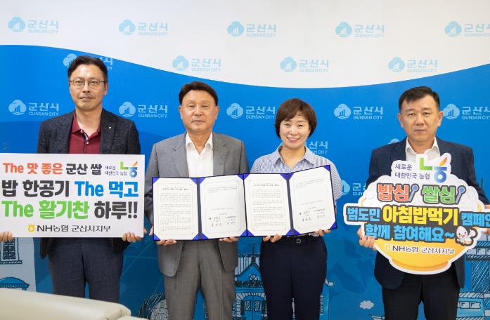 [뉴스서울] 8일 군산시와 농협중앙회군산시지부는 시민들의 균형된 식생활 습관으로 건강을 증진하고 군산쌀 소비 촉진을 도모하고자‘군산시민 아침밥 먹기 운동’ 업무협약을 체결했다.