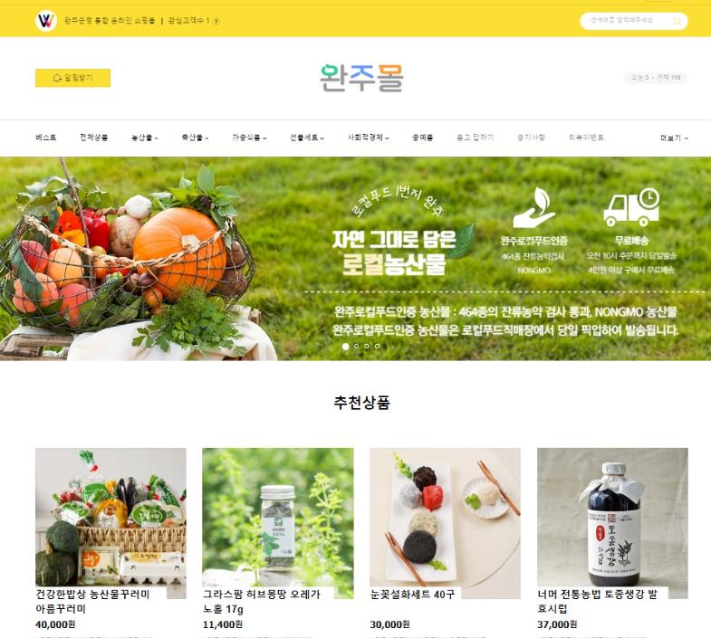지역 내 농업, 사회적경제, 제조업, 서비스업, 사회적경제 등 다양한 분야의 생산자들을 지원하는 온라인 쇼핑몰인 완주몰은 현재 30개사 200여 개 상품이 입점했다.