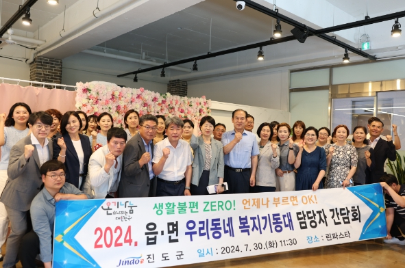 [뉴스서울] 지난 7월 30일 진도군에서는 읍·면 우리동네 복지기동대 읍면장과 업무 담당자 약 40명 간 소통의 시간을 갖고 2023년 우리동네복지기동대 성과대회 장려상 수상 노고를 치하·격려함과 동시에 2024년 성과대회와 지역복지 사업평가 대비 추진 간담회를 개최 했다.