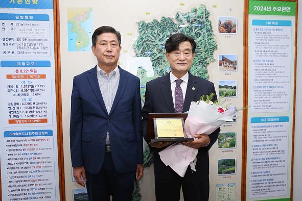 24일 올해 제2기 1일 군수인 이중하 1일 군수는 위촉패를 수여 받고, 보안서약서 작성과 문서 결재를 시작으로 군정 전반에 대한 현황과 관심·쟁점 분야의 업무를 보고받았다.