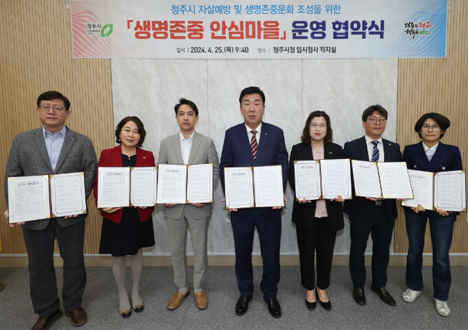 [뉴스서울] 청주시는 25일 임시청사 직지실에서 자살예방 및 생명존중 문화 조성을 위한 ‘생명존중 안심마을’ 운영 협약식을 개최했다.
