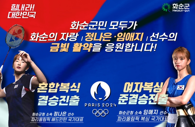 [뉴스서울] 화순군은 2일 배드민턴 정나은 선수, 복싱 임애지 선수가 2024 파리올림픽 메달을 획득했다고 밝혔다.