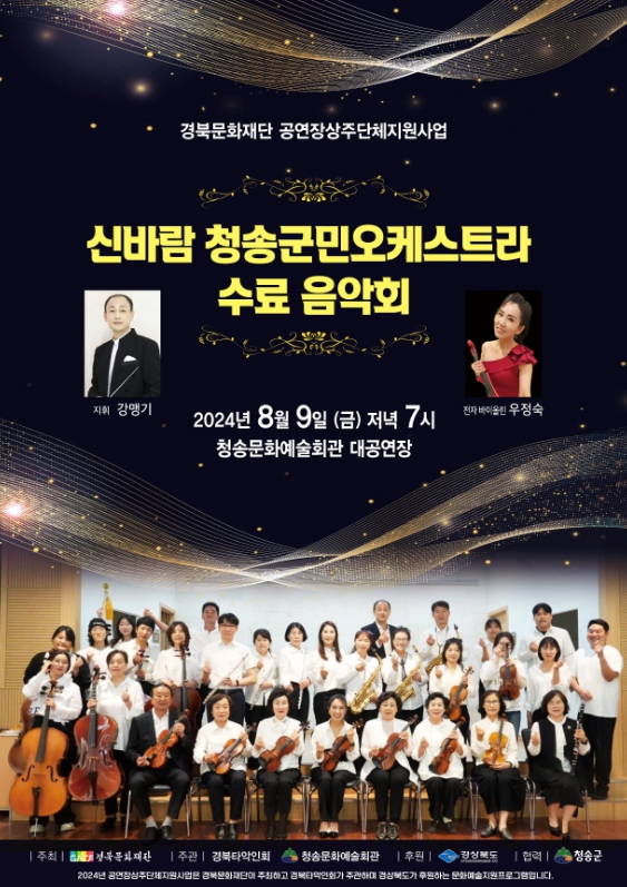 [뉴스서울] 청송군은 오는 8월 9일 금요일 오후 7시 청송문화예술회관 대공연장에서 ‘신바람 청송군민 오케스트라 수료 음악회’를 개최한다고 밝혔다.
