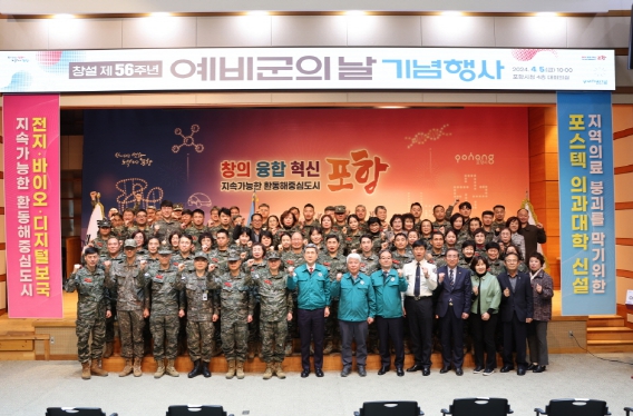 [뉴스서울] 포항시는 5일 ‘제56주년 예비군의 날’을 맞아 포항시 통합방위 협의회와 해병대 제1사단 공동 주관으로 기념식을 개최하고, 예비군의 노고를 격려했다.