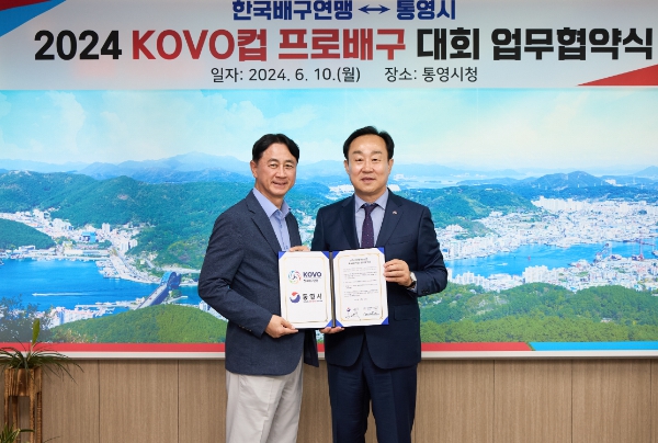 [뉴스서울] 통영시는 지난 10일 14시 한국배구연맹(KOVO) 관계자 등이 참가한 가운데‘2024년 통영 KOVO컵 대회’업무협약을 체결하고 성공적으로 대회를 개최하기 위해 적극 협력하기로 했다.