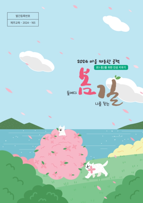 2024 제주교육 서귀포시교육지원청 지원계획 1-1 기본이 바로 서는 인성교육 추진을 위해 배포되는 ‘2024 마음 따뜻한 공책, 봄길’은 1부 인성 키움 자료‘들여다 봄, 2부 인성 도움 자료‘나를 찾는 길’로 구성되어 학생 중심의 인성 교육 활동 자료로 제작됐다.