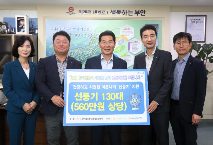 [뉴스서울] (사)우리농업지키기운동본부 전북본부와 농협부안군지부는 29일 부안군을 찾아 지역사회의 소외된 이웃들에게 써달라며 선풍기 130대(650만원 상당)를 기탁했다고 밝혔다.