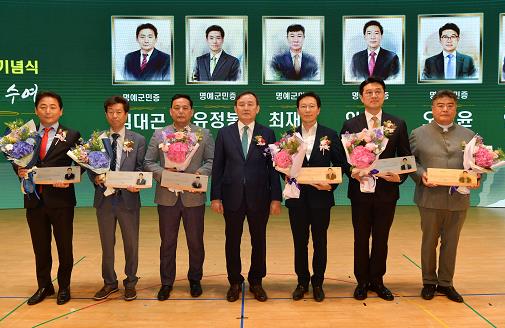 담양군명예군민증은 정지혁 ㈜보해양조기획생산본부 생산팀장, 엄수근(주)정인건축사무소 이사, 최광식 전국화물차운송사업연합회장, 이신원 한국노총전라남도지역본부의장, 오정윤 농협중앙회 미래전략준비TF단장, 안병노 중앙경찰학교 학생지원계장, 최재영 재경담양군향우회 봉사국장, 유정봉 담양올밀크영업이사, 김대곤(주)태신중공업 대표이사에게 수여됐다.