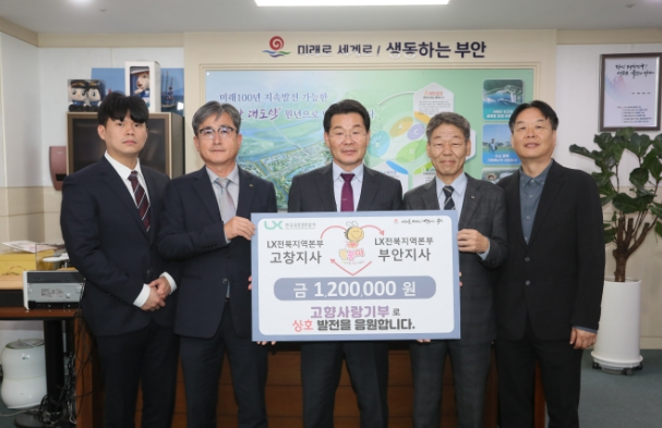 [뉴스서울] 부안군은 지난 23일 LX한국국토정보공사 고창지사(지사장 지안)와 부안지사(지사장 손홍국) 임직원 20여 명이 고향사랑 기부금으로 각 지자체에 120만 원씩상호 기탁했다고 밝혔다.