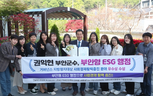 권익현 군수는 민선8기 공약사업으로 행복한 공동체 거버넌스를 만들어 가는 부안형 ESG 행정 실현을 추진하며 군정 운영 전반에 ESG 행정을 도입해 미래 100년 지속가능한 부안 미래 비전을 제시하는 데 주력하고 있다.