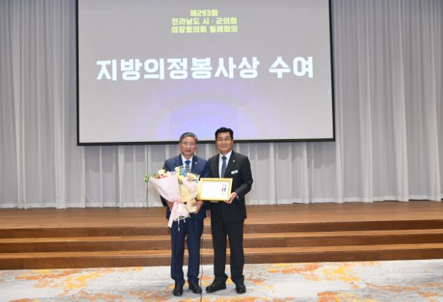 ‘지방의정봉사상’은 지방의정발전과 주민 복리증진, 지역경제 활성화를 위해 헌신·봉사 하는 등 최일선에서 의정활동을 펼친 의원에게 수여하는 명예로운 상이다.