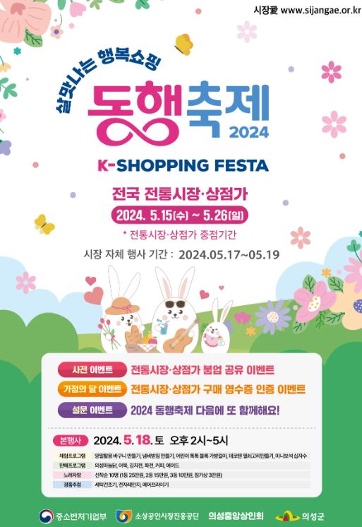 [뉴스서울] 의성군은 5월 14일부터 27일까지 14일간 의성전통시장과 의성중앙상점가(중앙시장)에서 ‘2024 대한민국 동행축제’가 개최된다고 밝혔다.
