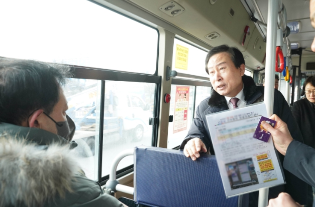 ▲ 1. 박홍률 목포시장이 시내버스 노선개편에 맞춰 시내버스에 탑승해 의견을 청취했다. |