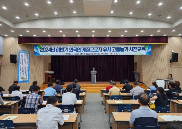 [뉴스서울] 청도군은 지난 16일 농업기술센터에서 2024년 하반기 외국인 계절근로자 도입을 위한 고용농가 40명을 대상으로 사전교육을 실시했다.