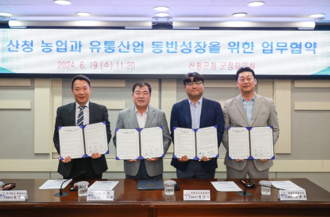 19일 산청군은 군청 군정회의실에서 ‘산청농업과 유통산업 동반성장을 위한 업무협약식’을 가졌다고 밝혔다.