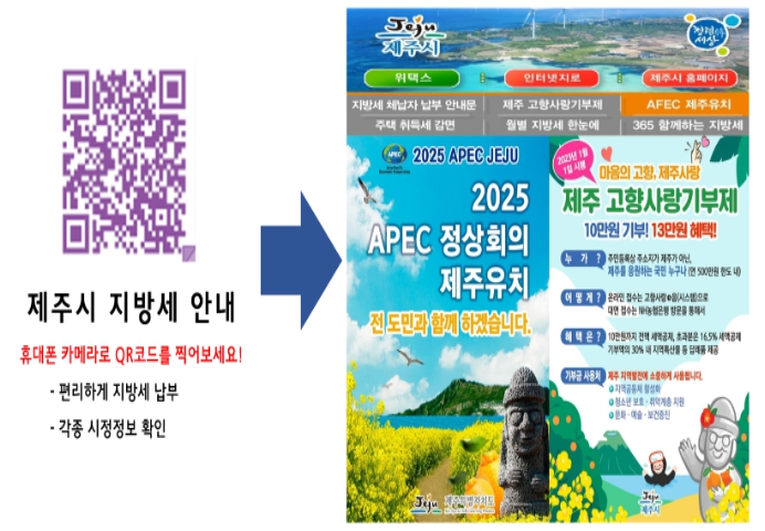 지방세 고지서 QR코드에는 지방세 정보뿐만 아니라 민원, 일자리, 문화, 관광, 2025 APEC 정상회의 제주유치, 제주고향사랑기부제 등 시민들이 궁금해 할 다양한 정보가 제공된다.