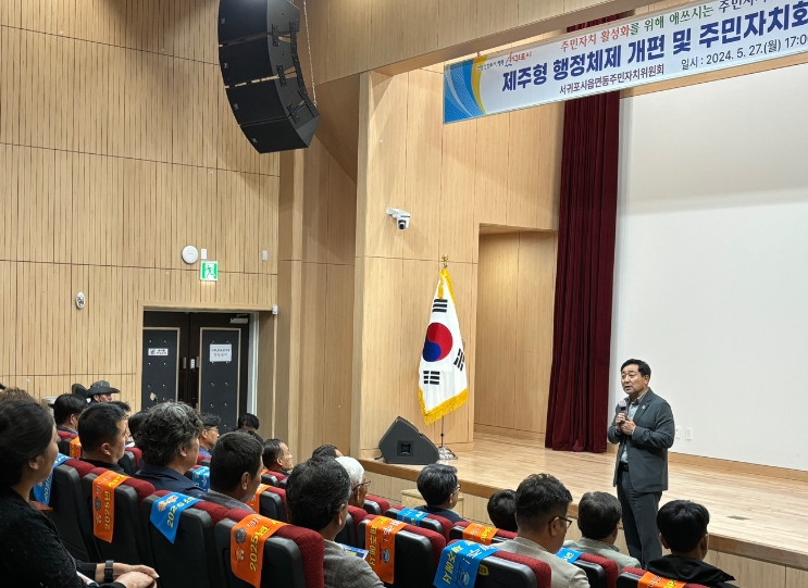 서귀포시는 17개 읍·면·동 주민자치위원회 위원들을 대상으로 제주형 행정체제 개편 및 주민자치회 설명회를 개최하여 제주형 행정체제 개편 추진상황과 로드맵 공유, 향후 추진계획 등을 공유하고 주민자치회에 대한 필요성과 이해 증진을 위한 자리를 마련했다.