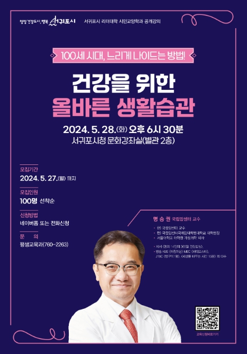 서귀포시 관계자는 “이번 공개강의를 통해 올바른 의학 지식을 습득함으로써 건강한 생활습관을 유지할 수 있기를 바란다”며 “앞으로 운영되는 공개강의에서도 시민 여러분께 더 유익하고 알찬 내용의 강의를 제공할 수 있도록 노력하겠다”고 말했다.