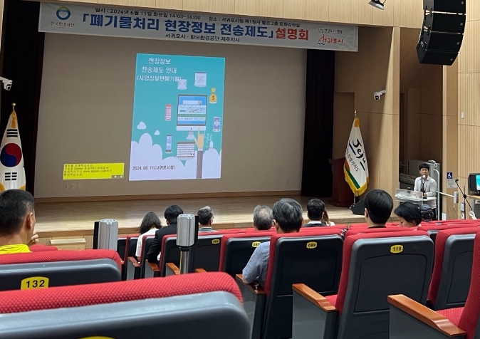[뉴스서울] 서귀포시는 11일에 한국환경공단 제주지사와 함께 관내 사업장일반폐기물 수집·운반자 및 처리자 등 72개소 50여명이 참석한 가운데 현장정보전송제도에 대하여 설명회를 개최했다고 밝혔다.