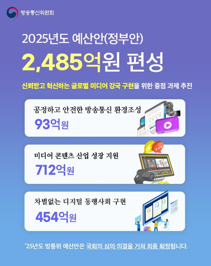 [뉴스서울] 방송통신위원회는 2025년도 예산으로 총 2,485억 원을 편성하여 국회에 제출했습니다.