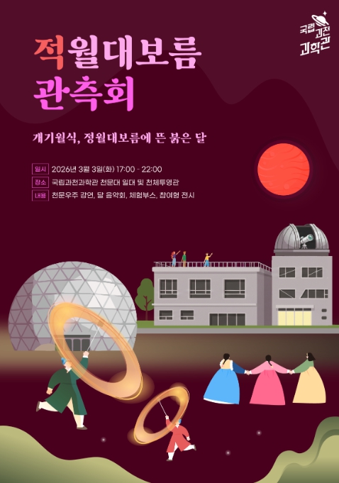 [뉴스서울] 과학기술정보통신부 국립과천과학관은 정월대보름인 2026년 3월 3일, 천문대와 천체투영관 일대에서 개기월식 특별 관측회를 연다.