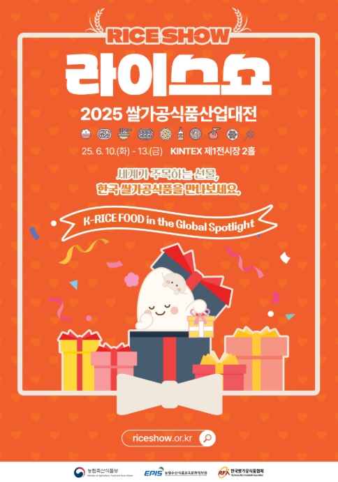 [뉴스서울] 농림축산식품부는 오는 6월 10일부터 6월 13일까지 4일간 일산 킨텍스 제1전시관에서 “세계가 주목하는 선물, 한국쌀가공식품(K-RICE FOOD in the Global Spotlight)”라는 표어로 쌀가공식품산업대전(라이스쇼)을 개최한다.