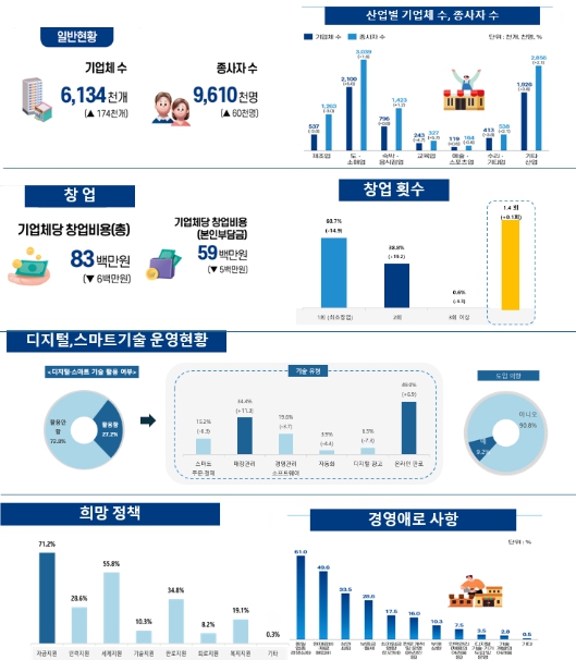전년과 비교하면 기업체수와 종사자수는 증가하고, 기업체당 평균 종사자수는 소폭 감소했다.