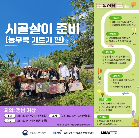 [뉴스서울] 농림축산식품부는 2025년 '청년 여성 농업·농촌분야 탐색교육(시골언니 프로젝트)'을 6월부터 10월까지 운영한다고 밝혔다.