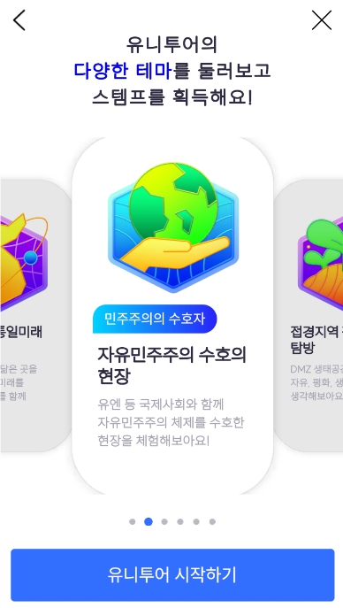 ‘유니투어’ 앱은 전국 60여 곳의 통일·안보 현장을 탐방할 수 있는 위치기반(GPS) 답사 인증 기능을 제공한다.