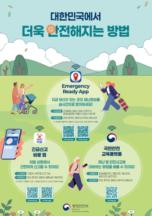 이번 캠페인은 국내에 거주하는 외국인이 보다 안전하게 생활할 수 있도록, 외국인 대상으로 신속하고 정확한 재난안전정보를 제공 중인 디지털 안전서비스(3종)를 적극 홍보하기 위해 마련됐다.