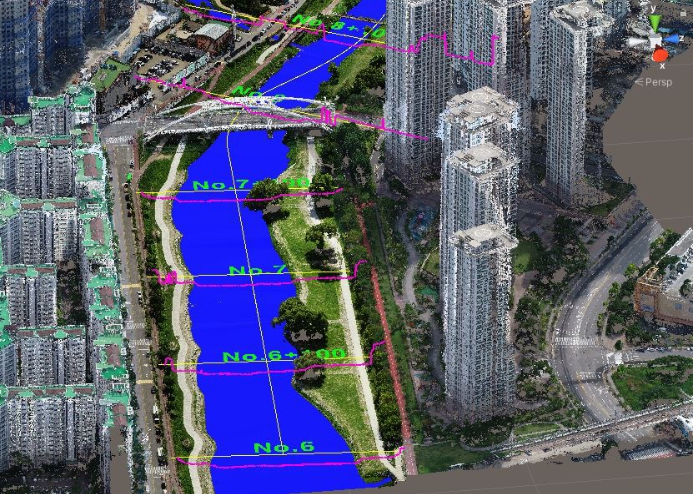 ▲ 3차원 모델 기반의 지형구축(하천) |