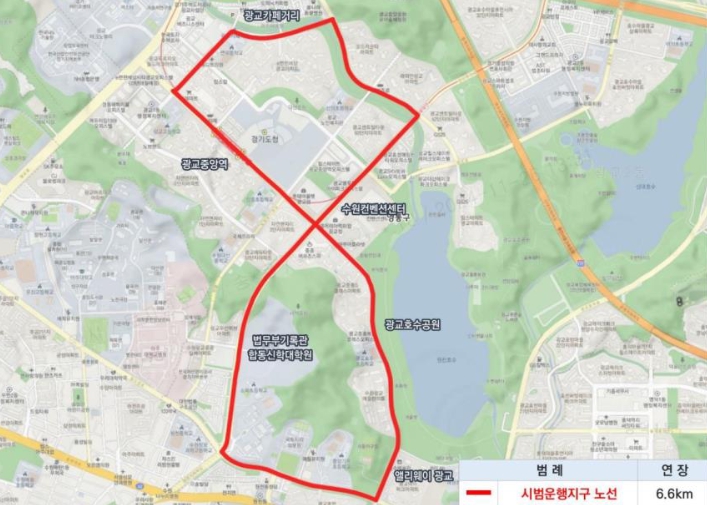 ▲ 제8차 시범운행지구 신규・변경 지정지구(수원 광교) |