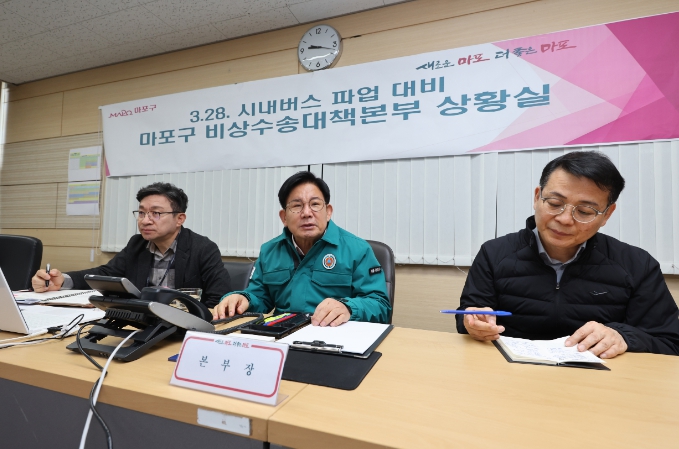 정류장에서 현장 점검을 마친 박강수 마포구청장은 곧바로 마포구청 내에 설치된 비상수송대책본부 상황실을 방문해 구민의 불편을 최소화할 수 있도록 철저한 대비를 당부했다.