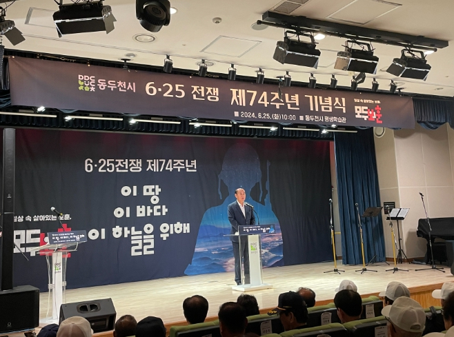 [뉴스서울] 동두천시는 25일, 6·25전쟁 제74주년을 기념해 평생학습관 2층 공연장에서 ‘6·25전쟁 제74주년 기념식’을 개최했다.