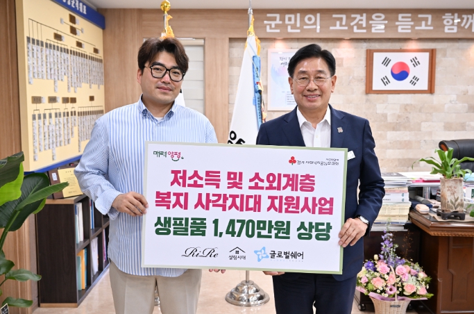 [뉴스서울] 사단법인 글로벌쉐어가 지난 4일 양평군 취약계층을 위해 1470만 원 상당의 생필품(주방용품, 곰팡이 제거 용품 등)과 여성화장품을 기탁했다.