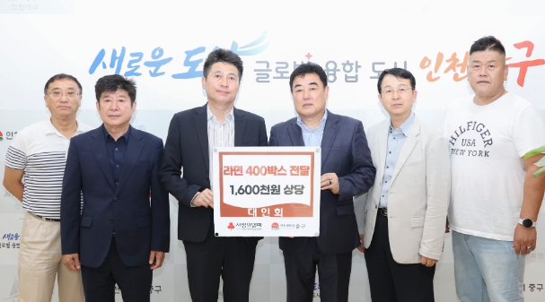 [뉴스서울] 인천시 중구는 인천 사업주 대표의 모임인 대인회로부터 “추석 명절을 맞아 생계가 어려운 취약계층에 전달해 달라”며 라면 400박스를 기탁받았다고 5일 밝혔다.