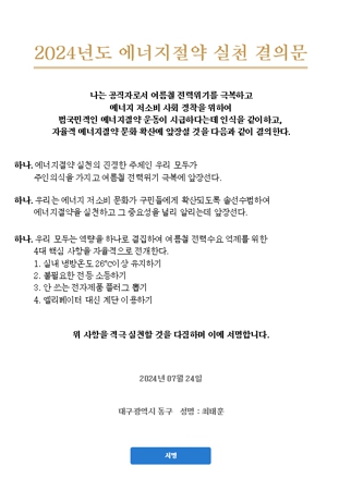 ▲ 대구 동구청, 2024년 에너지 절약 실천 결의 |