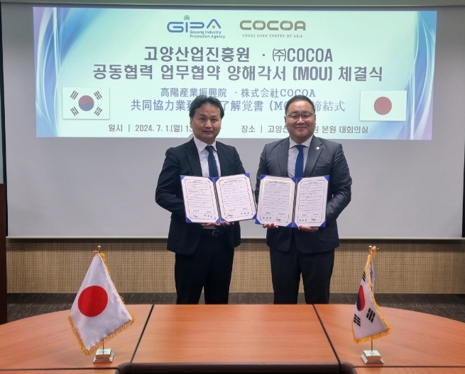 [뉴스서울] 고양특례시 산하 고양산업진흥원은 지난 1일 오후, 일본 도쿄 소재 한상(韓商)기업인 ㈜COCOA와 한일 기업 간 교류 촉진 등을 위한 업무협력 양해각서(MOU)를 체결했다.
