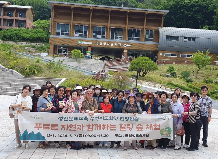 [뉴스서울] 대구 수성구(구청장 김대권)는 지난 7일 ‘수성이도학당’에서 글을 배우는 수강생 38명과 국립청도숲체원을 방문해 숲 체험 현장학습을 진행했다고 밝혔다.