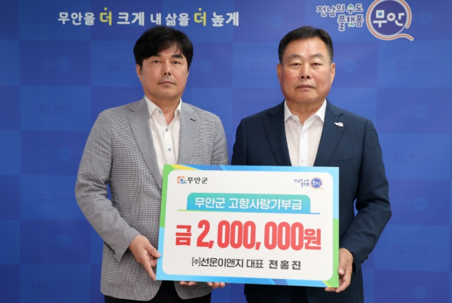 [뉴스서울] 전남 무안군은 ㈜선운이앤지 전홍진 대표가 고향사랑기부금 200만 원을 기탁했다고 14일 밝혔다.