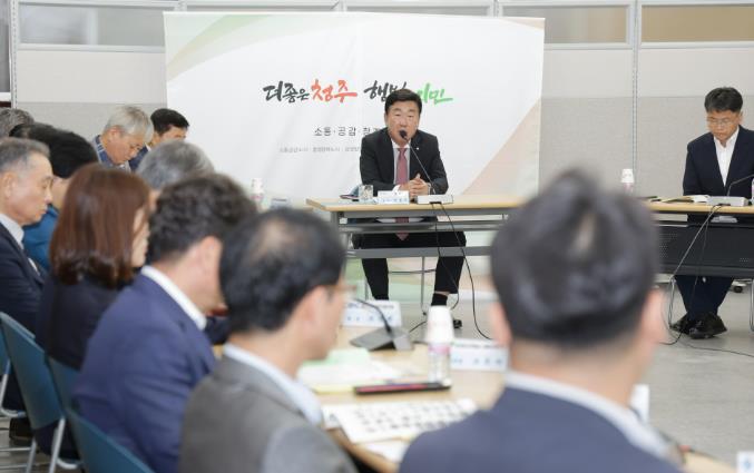 이범석 청주시장을 비롯한 실·국·본부장, 지역 내 경제 관련 기관장 등 29명이 참석해 기업경영과 시민 생계안정을 위협하고 있는 현 경제 상황을 극복하기 위한 방안 등을 심도 있게 논의했다.
