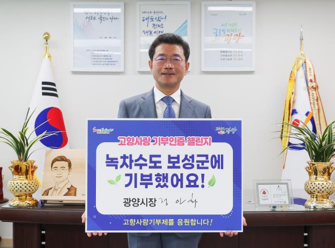 [뉴스서울] 광양시는 25일 정인화 광양시장이 고향사랑기부제 활성화와 기부문화 확산을 위해 지난해에 이어 2년 연속 ‘고향사랑기부 인증 챌린지’에 동참했다고 밝혔다.