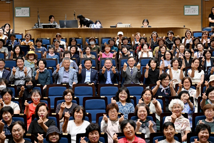[뉴스서울] 지난 23일 삼국유사교육문화회관 공연장에서 8개 읍면 여성평생교육대학 수강생들이 현장학습의 일환으로 퓨전마당극 '최진사댁 셋째딸 신랑찾기'를 관람했다.