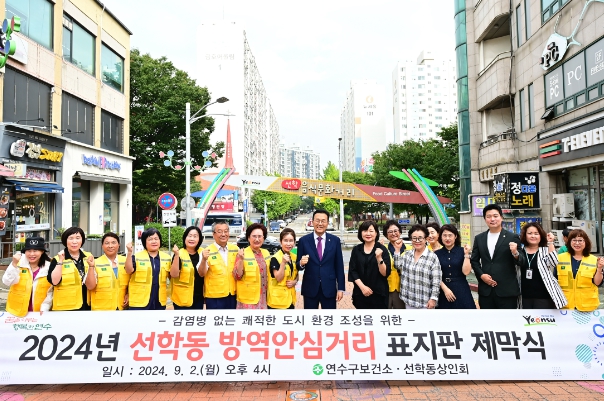 [뉴스서울] 연수구가 인천시 최초로 선학동 음식문화거리를 감염병으로부터 안심하고 찾을 수 있는 ‘방역안심거리’로 지정하고 2일 표지판 제막식을 열었다.