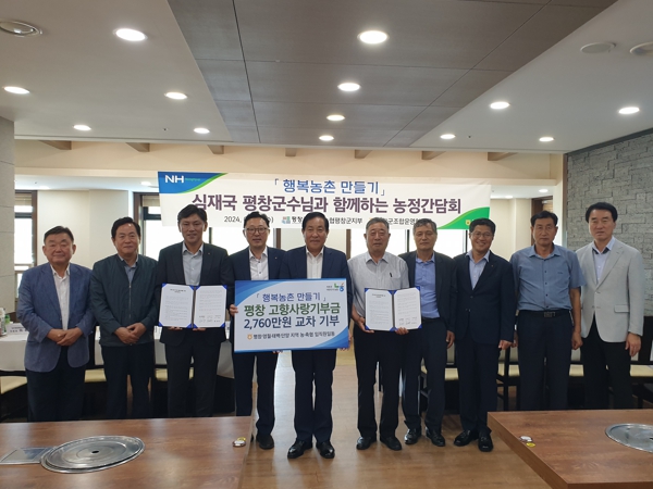 심재국 평창군수는 “고향사랑기부제 상호 기부에 동참해 주신 조합장님들과 지역농협 임직원분들께 진심으로 감사드리며, 농축협과 상생 협력하여 고향사랑기부제를 활성화하고 기부금을 가치 있게 활용하여 지역 사회에 환원할 수 있도록 노력하겠다.”라고 답했다.